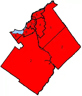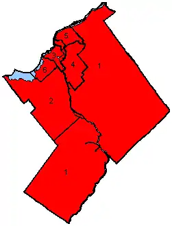 ![]() Map of the region's ridings in 1984. Colours show the result from the 1984 election |