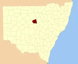 - "Canbelego County". Geographical Names Register (GNR) of NSW. Geographical Names Board of New South Wales.