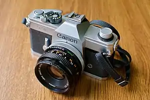 The Canon TX was a 35mm single-lens reflex camera manufactured by Canon of Japan from March 1975.[1] It featured a Canon FD lens mount, and was also compatible with Canon's earlier FL-mount lenses in stop-down metering mode. The TX was a cheaper version of the Canon FTb for the export market, as was the slightly earlier TLb. Compared to the TLb, the TX had a hot shoe for flash.