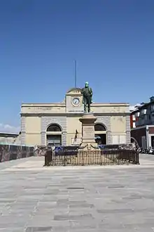 Luigi Orlando on August 31, 1865 signed a thirty years concession for the buildings and the area of the former Lazzaretto di San Rocco (Saint Roch lazaret) which was transformed in an arsenal by Tommaso Mati in 1852.[2] The shipyard entered into works the following year, and on July 29, 1867, the first ship was launched, the ironclad Conte Verde for the Regia Marina. The shipyard developed and built the gunboats Alfredo Cappellini (1868) and Faa di Bruno (1869) for the Regia Marina and on March 17, 1883 the most difficult launch was that of the ironclad Lepanto, on project by Benedetto Brin, because of the inadequacy of the dock. The Lepanto was entirely built by the shipyard in each part including the machineries and the armament. It was then decided to build the new Scalo Morosini (Morosini slipway) toward the entrance of the harbour in open sea to ease the launch of greater ships. The shipyard had 1,140 workers employed in 1886 and other 600 workers were occupied by Metallurgica Italiana founded by the Orlando Brothers and connected to the shipbuilding.[3]