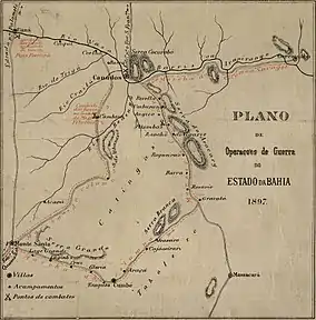 ![]() Map of the location of the fighting. The northern part is now flooded by the Cocorobó Dam | |