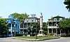 The Cape May Historic District is an area of 380 acres (1.5 km2) with over 600 buildings in the resort town of Cape May, Cape May County, New Jersey. The city claims to be America's first seaside resort and has numerous buildings in the Late Victorian style, including the Eclectic, Stick, and Shingle styles, as well as the later Bungalow style, many with gingerbread trim. According to National Park Service architectural historian Carolyn Pitts, "Cape May has one of the largest collections of late 19th century frame buildings left in the United States... that give it a homogeneous architectural character, a kind of textbook of vernacular American building."[4]