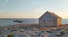 The Cape Planka (Croatian: Rt Ploča, Punta Planka) is a cape of Croatian shore of the Adriatic Sea located 2 kilometres (1.2 mi) southeast of village of Rogoznica in the Šibenik-Knin County. The cape is the most prominent point of land along the Dalmatian shore. It represents a geographic and climatological boundary of the northern and the southern Adriatic often characterised by strong sea currents and swells as weather systems from the north and the south come in contact. There is a navigational beacon at the cape.[1]