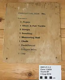 Initially, there was no professional hangman employed—the executioner was simply chosen from among any who were deemed qualified. On occasion, convicted criminals were employed as hangmen, often in exchange for reduced sentences or monetary reward. In 1877, the sheriff of Blenheim recommended that a professional executioner be hired. Tom Long, an Irishman who claimed to have been an executioner in Australia, was hired as the official hangman.[7] He was the only official hangman to be publicly known; others remained anonymous.