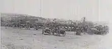 By 17 September the 5th Cavalry Division, which would lead the advance, was deployed north-west of Sarona, eight miles (13 km) from the front line, with the 4th Cavalry Division in orange groves to the east, ten miles (16 km) from the front, and the Australian Mounted Division in reserve near Ramleh and Ludd, 17 miles (27 km) from the front line.[10][11] All movement, restricted to the night hours, culminated in a general move forward on the eve of battle during the night of 18/19 September, when the Australian Mounted Division moved up to Sarona. The supplies for the three divisions concentrated in the rear in divisional trains, in massed horse-drawn transport and on endless strings of camels, clogging every road in the area.[12][13] One iron ration and two days' special emergency ration for each man, and 21 pounds (9.5 kg) of grain for each horse, was carried on the trooper's horse, with an additional day's grain for each horse, carried on the first-line transport limbered wagons.[14]