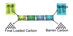 Leached pulp and carbon are transferred in a counter current flow arrangement between a series of tanks, usually numbering 4 to 6. In the final tank, fresh or barren carbon is put in contact with low grade or tailings solution. At this tank the fresh carbon has a high activity and can remove trace amounts of gold (to levels below 0.01 mg/L Au in solution).