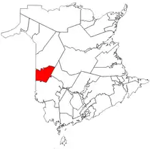 ![]() The riding of Carleton (as it exists from 2014) in relation to other New Brunswick electoral districts. | |||