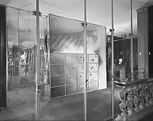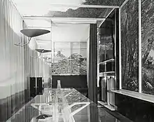 The third phase of his design dates to 1950 when he exhibited at Italy at Work, Her Renaissance in Design Today,[12] a show opening at the Brooklyn Museum[13] in New York. He began to use plywood and simplified his furniture and interiors in a modernist way, while posing particular design attention to the joints binding the components making up the furniture.