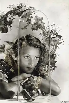 Beginning in 1934, the date of his first signed photograph, Carlo Mollino engages with B&W photography[15] for over a decade, following two directions. On the one hand, he focuses mainly on female portraits, more rarely on images of interiors and skis, signing his unique prints as fine art works, publishing and exhibiting them in photographic shows.[16] These portraits[17] are formally close to the dreamlike and refined shots of Man Ray and Erwin Blumenfeld, although enriched with literary quotes and architectural settings of his design.