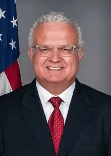 On July 8, 2013, President Obama announced his intent to nominate Moreno to be United States Ambassador to Belize.[16] On July 9, 2013, Obama formally nominated Moreno to the post.[17] On Wednesday, May 14, 2014, the United States Senate confirmed Moreno to his ambassadorship by voice vote. Moreno arrived in Belize on June 21, 2014 and presented his credentials to Governor General Sir Colville Young on June 24, 2014.[18] He stepped down from the post at the end of Obama's term.[19]