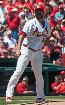 Carlos Manuel Villanueva Paulino (born November 28, 1983) is a Dominican former professional baseball pitcher. He played in Major League Baseball (MLB) for the Milwaukee Brewers, Toronto Blue Jays, Chicago Cubs, St. Louis Cardinals and San Diego Padres.