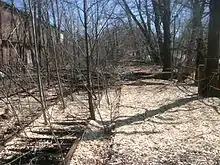 Carlton Hill station was situated at the intersection with Jackson Avenue in Rutherford, where the Erie Railroad's main line crossed, 10.75 miles (17.30 km) away from New York City's Chambers Street Ferry Terminal.[7] The main line crossed through Carlton Hill on two tracks, separated by inter-track fencing. There was one main line platform, next to the station depot, which was located on the eastbound side of the tracks. During the morning commuter rush, Carlton Hill was full of commuters heading for New York City. After the commuter rush, a station agent's work was to inspect the yard and complete freight billing for the Royce Chemical Company. The yard commonly had boxcars, empty and loaded waiting for pick-up.[8] Although the station no longer gets use, the former site is accessible via New Jersey Transit's buses #160 and #190 along with a walk down to Jackson Avenue. The former station site and trackage are owned by Norfolk Southern Railway.[9][10][11]