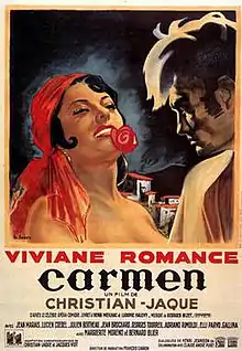 Carmen is a French-Italian musical drama film directed by Christian-Jaque and starring Viviane Romance, Jean Marais and Lucien Coëdel. It is a version of the famous opera.[1] Although filmed in 1942 it was not released until 1944 in France and 1945 in Italy.