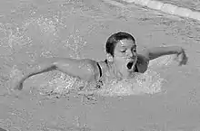 At the 1960 U.S. Olympic Trials, Wood finished first in the 100-meter butterfly event and was favored to win the gold medal in the event at the Olympics. At the 1960 Summer Olympics in Rome, however, during the women's 100-meter butterfly finals, she accidentally swallowed water during the turn and did not finish the race. She did win a gold medal as a member of the winning U.S. team in the women's 4×100-meter freestyle relay, together with teammates Joan Spillane, Shirley Stobs and Chris von Saltza. She swam the crucial third leg of the relay, during which she caught up to and passed Australian swimmer Lorraine Crapp and gave a two-foot lead to anchor swimmer von Saltza, who finished the relay in first place to give the Americans the gold medal. The U.S. relay team set a new world record of 4:08.9 in the event final—nine seconds faster than the previous record. Wood also swam for the gold medal-winning U.S. team in the 4×100-meter medley relay, but under the international swimming rules in effect in 1960, she did not receive a medal because she did not swim in the event final. Individually, she competed in the 100-meter freestyle, and finished fourth in the event final with a time of 1:03.4. Wood, at 14 years old, was the youngest member of the 1960 U.S. Olympic team to win a medal.[3][4][5]