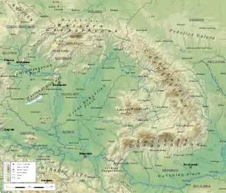 - Orographic map highlighting Carpathian mountains