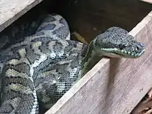 Morelia spilota, commonly referred to as the carpet python , is a large snake of the family Pythonidae found in Australia, New Guinea (Indonesia and Papua New Guinea), Bismarck Archipelago, and the northern Solomon Islands.[1][2][3] Many subspecies are described; ITIS lists six,[4] the Reptile Database six,[5] and the IUCN eight.[1]