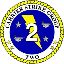 Commander Carrier Strike Group 2 (COMCARSTRKGRU 2 or CCSG 2) is responsible for unit-level training, integrated training, and material readiness for the group's ships and aviation squadrons. When not deployed, the strike group is part of the U.S. Fleet Forces Command, and its commander reports to Commander, U.S. SECOND Fleet. When deployed overseas, the group comes under command of the numbered fleet (Third, Fourth, Fifth, Sixth, or Seventh) in whose area it is operating, and will have a task force or task group designator, for example, Task Group 50 in the Fifth Fleet area.[23]