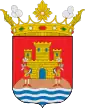 Of gules, the golden castle of vert abjured sustained natural mount, and this sustained of silver and azure waves. On both sides of the castle, two mace-bearers.