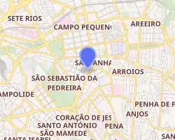 The building is situated a corner of a residential block (at the corner of Rua 5 de Outubro and Rua Pinheiro Chagas in the Bairro de Picoas), with walled garden near the Maternidade Dr. Alfredo da Costa.[1][2]