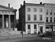 The Cashier's House was designed by Philadelphia-architect William Kelly and was built as part of a three-structure complex, in 1839. The Coach House and Old Custom House were also part of the complex. It was built primarily as the residence for the chief executive officer of the next door Erie Branch of the Bank of the United States.[3] The bank closed in 1841, but the cashier of the bank continued to live in the house until his death in 1843.[3] In 1850, the house was sold for $4,000 ($116,329 in present-day terms) at half of its original cost.[3] The Cashier's House was bought by Samuel Woodruff in 1872.[4] The Woodruffs occupied the Cashier's House until 1913, leading the house to sometimes be referred to as the "Woodruff Residence" or "Woodruff House."[3][5]