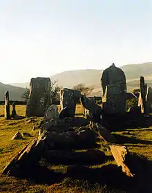 Cashtal yn Ard (Castle of the Heights) is a Neolithic chambered tomb in Cornaa, in the parish of Maughold in the Isle of Man.[1] It is situated on a low hill overlooking much of the surrounding parish of Maughold and across to the Lake District in England.[2] The cairn was excavated in the 1930s and again in 1999.[3] It is one of the most significant megalithic tombs on both the Isle of Man and Britain.[2][4][5]