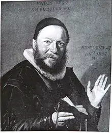 Sibelius was born in Elberfeld (near Wuppertal) and was trained in Herborn and Siegen before attending Leiden University to study theology under Gomarus and Arminius, and Hebrew under Coddaeus.[1] On his return he became minister in Randerode (where he married the mayor's daughter Maria Klock, in 1610), Geilenkirchen and Gulik. In 1617 he was sent to the Hague, where he received a stipend for preaching in Nijmegen. He was called the same year to Deventer, where he stayed for 30 years until leaving service in 1648.[1]