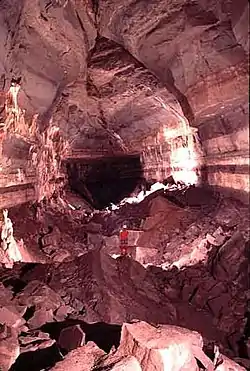 One of the rooms in the cave (the "Big Room") is 800 ft long, 180 ft high and 75 ft wide.[7]