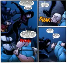 As Orphan, Cassandra is later inducted into Batman and Batwoman's "boot camp" for young Gotham vigilantes.[32] Orphan is known for being the best fighter on the team. She tries to fight the team's battles alone and is known for sneaking into Stephanie Brown's and Harper Row's apartments in the middle of the night. When Batman is attacked by the Colony, she tries to take them on by herself and is left injured and later sedated after leading the Colony into their base. Clayface helps Batwoman, Red Robin, Spoiler, and the injured Orphan escape.