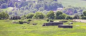 An anti-aircraft battery was built near the south-east end of the hill and a range finder is located at the north side of the outer bailey, the remains of which may be seen, and pieces of high-explosive shell casings are occasionally picked up in the adjacent fields.