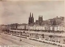 The Castle of Burgos was a castle and alcázar, located in the city of Burgos,[1] in the hill of San Miguel to 75 metres (246 ft) above the city and to 981 metres (3,219 ft) above the sea. This hill was the subject of archaeological surveys by General Centeno in the years 1925 and 1926 trying to find Napoleonic military files from when the French in their retreat blew up the fortress. According to the results obtained in this excavation the origin of the castle dates to the Visigoths, and its oldest parts, to the Romans.
