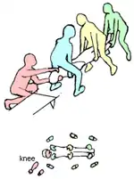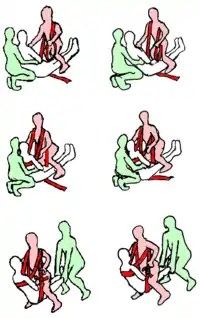 - the second team member is kneeling at the feet, in the axis of the victim, and holds the ankles;