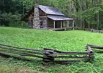 The Hannah Cabin in Little Cataloochee was built by John Jackson Hannah, the son of Little Cataloochee pioneer Evan Hannah. The cabin's chimney is one of only three surviving brick chimneys in the national park.[36]