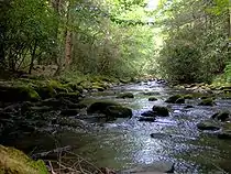 Cataloochee was largely spared the logging boom that deforested much of Southern Appalachia in the early 20th century, although Suncrest Lumber and Parsons Pulp and Lumber had purchased most of the surrounding ridgeline with intent to cut it.[25] Many residents of Cataloochee found employment at logging camps at Hartford, Crestmont, and Big Creek, all located along the Pigeon River to the north, and Walnut Bottom, located on the other side of Sterling Ridge.[26] The arrival of the national park movement in the 1920s put an end to large-scale logging operations in the northeastern Smokies before they reached the Cataloochee lowlands.