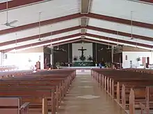 The St. Barnabas' Anglican Cathedral, Honiara[1] is one of three Anglican cathedrals built in the Solomon Islands. The St. Luke's Cathedral was the first to be built in 1920s at Siota, Nggela but it was destroyed in World War II. The second was the All Saints Cathedral, a temporary structure built in the 1950s which was replaced by the St. Barnabas' Anglican Cathedral, Honiara, named after the St. Barnabas' Chapel and School on Norfolk Island, in the 1960s; the planning to build it started in 1961. The foundation stone for the new cathedral was laid on 6 January 1968 by Bishop Alfred Hill. A dedication service was held on 15 December 1968 which was attended by 1500 people. The cathedral was formally consecrated on 16 June 1969 when 2000 people attended the ceremony and it was dedicated by Bishops Chisholm and Alufurai.[2][3]