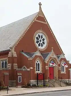 St. James parish was established in 1868 and was the first Episcopal congregation in the city.[2] The present church building was designed by the architectural firm of Austin & Parker in the Gothic Revival style. It was completed in 1894.[1] The parish hall was completed in 1920.[3]: 29