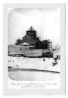The cathedral was built during the reign of the Grand Duke of Lithuania Algirdas for his Orthodox second wife Uliana of Tver in 1346.[1] It was constructed by Kievan architects with the blessing of Saint Alexius, Metropolitan of Kiev and all Rus', in 1348.