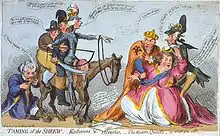 A 1791 British caricature of an attempted mediation between Catherine (on the right, supported by Austria and France) and the Ottoman Empire