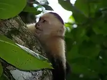 The Panamanian white-faced capuchin (Cebus imitator), also known as the Panamanian white-headed capuchin or Central American white-faced capuchin, is a medium-sized New World monkey of the family Cebidae, subfamily Cebinae. Native to the forests of Central America, the white-faced capuchin is important to rainforest ecology for its role in dispersing seeds and pollen.