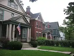 The historic district comprises nineteen buildings: eighteen contributing and one non-contributing. Primarily built as single-family houses,[1] the buildings in the district lie along both sides of Central Avenue both north and south of its intersection with Federal Street, but in no direction does the district extend more than one block from the Federal-Central intersection: parts of Central in these two blocks, as well as all territory to the north, east, and south, comprise Grafton Hill's historic district, and a small non-historic strip is located along Salem Avenue, separating Grafton Hill from the larger Dayton View Historic District farther west.[3] Its identity is not always kept separate from Grafton Hill; some community events, such as walking tours, lump these two blocks of Central Avenue with the surrounding neighborhood.[4]