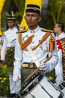 ![]() A drummer of the band during the Hari Merdeka celebrations in Sabah. | |