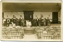 The northern section was opened in April 1924 by Lord Morris (1859–1935), member of the House of Lords and previous premier of Newfoundland.[4][31] The southern frontage was opened on a Sunday shortly before Easter, 1932 by the High Sheriff of Kent Major Sir John Theodore Prestige. Callender's Cableworks Band (1898–1961)[32] performed at the ceremony.[31][33] Before the Bandstand was built, bands such as the 6th Dragoon Guards would give concerts around the flagstaff which is situated just to the west of the present bandstand.[4] When first built, the Central Bandstand consisted only of what is now the north or seaward side, with stage, turreted side wings and an outdoor area to the north for the audience in deck chairs; the area was available for deck chairs until the 1970s. Visiting bands and school bands played there.[34] For example, the Royal Warwickshire Band visited in 1925. In those days a red carpet would be laid for the conductor to walk across from the Connaught Hotel which was and is, as of 2013, directly opposite the Bandstand.[1] The Reverend Daubeney at Herne used to arrange for his sermons to finish in time to allow the congregation to catch the bus to Herne Bay for the evening Bandstand concert.[1] This venue was so popular in 1927 that queues could stretch as far as the Pier, and crowds were often turned away.[35]