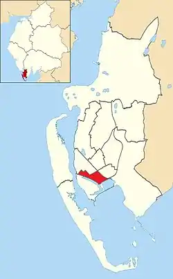 Central Barrow refers both to the town centre of Barrow-in-Furness, Cumbria, England and to the electoral ward that roughly covers the eastern part of that town centre. In 2001 5,584 (ranking 5th out of 13) lived in the Central ward.[1] The population density was 55.96 per hectare, which was well above the local average of 9.24, and England average, 3.77.[2] The population of Central ward had reduced to 4,583 at the 2011 Census.[3] Central Barrow is amongst the 3% most deprived areas in the country and households have an average weekly income around £100 lower than the region's average,[4] however the area being the central business district of the town is also home to many of Barrow's retail outlets, as well as a large amount of offices, restaurants and governmental buildings. Part of the £200 million Waterfront Barrow-in-Furness project is being constructed in the southern part of Central Barrow (including the new Marina Village).