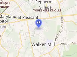 Central High serves:[4] most of Walker Mill,[2] a section of the Town of Capitol Heights,[5][4] a section of the City of Seat Pleasant,[6] most of Peppermill Village CDP,[7] and a portion of Summerfield CDP.[8]