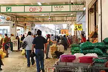 The Central de Abasto is one of the two large wholesale markets in Mexico City, along with the Nueva Viga market, which specializes in fish and seafood.[1] The facility is located on a property that extends 328 hectares (810 acres), with more than 2,000 businesses that sell principally fruit, vegetables, meat and some processed foods in a main building that covers 85 hectares (210 acres).[1][2] The project was designed by architect Abraham Zabludovsky. He designed a slightly deformed hexagon shaped building which measures 2,250 meters across. The entrances and exits are located on opposite ends of the building.[3] In addition, there are more than sixty other installations on the property with services such as refrigeration, shipping and more.[1][2] The center commercializes more than 30,000 tons of food products daily, representing 80% of the consumption of the 20 million people in the Mexico City metropolitan area.[2] This and the Nueva Viga market are the two largest employers in Iztapalapa[1] The market generates 70,000 jobs directly and attends to more than 300,000 people per day.[2] Its distribution network connects with more than 1,500 points of sale, including mercados públicos, tianguis, 380 establishments associated with fifteen chain stores as well as other kinds of commercial centers.[2] The Central de Abasto is the most important food warehouse and distribution center in Mexico and the largest institution of its kind in the world,[1][2][4] Although most of the business conducted at the site is between wholesalers and retailers, retail sales still play a significant role.[2]