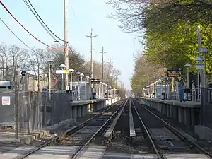 ![]() Centre Avenue Station platforms looking towards Long Beach | |||||||||||