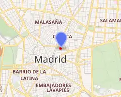 The building is located at Gran Vía 13, in the Sol neighborhood of the Centro district of the Spanish capital. It also fronts Calle del Clavel 1 and Calle del Caballero de Gracia 9.