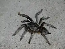Ceratogyrus is a genus of tarantulas found in southern Africa.[1] They are commonly called horned baboons for the foveal horn found on the peltidium in some species. They are readily distinguished from other African theraphosid genera by the combined presence of a retrolateral cheliceral scopula, composed of plumose, stridulatory setae, and the strongly procurved fovea. The fovea is typically strongly procurved and in some species surrounds a distinct protuberance. This protuberance may take the form of a simple posterior extension of the caput, a low-set plug or a prominent, discrete conical projection. All Ceratogyrus species possess a pale yellow anteriorly placed, transverse, sub-abdominal band. This feature is not distinct in other Harpatirinae except Augacephalus junodi. The absence of dense, ventral femoral fringes on the palpi and legs I and II distinguish Ceratogyrus spp. from female A. junodi.