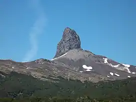 Cerro Pantojo is an extinct basaltic stratovolcano on the border of Argentina and Chile. It lies immediately south of Cardenal Antonio Samoré Pass and its characteristic spire-shaped summit is an eroded volcanic plug. It also has flank lava flows.