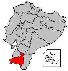 Chaguarpamba is a canton in the Province of Loja Ecuador. Its seat is Chaguarpamba. The canton is located in the north of the province and is bordered by the cantons of Catamayo, Olmedo, Paltas, and the province of El Oro. The name is Quichua for "Valley of Jaguars." It occupies an area of 311.7 km2 at an altitude of 1050 m, with a population of 10,403. Average temperature is between 18 and 24 °C