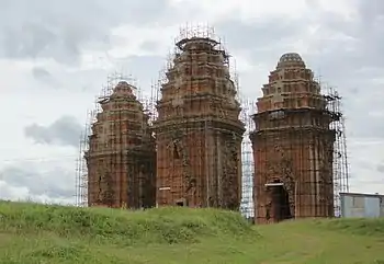 Between the 7th to 10th centuries AD, the Cham polities rose to become a naval power; as Cham ports attracted local and foreign traders, Cham fleets also controlled the trade in spices and silk in the South China Sea, between China, the Indonesian archipelago and India. They supplemented their income from the trade routes not only by exporting ivory and aloe, but also by engaging in piracy and raiding.[26] However, the rising influence of Champa caught the attention of a neighbouring thalassocracy that considered Champa as a rival, the Javanese (Javaka, probably refers to Srivijaya ruler of Malay Peninsula, Sumatra and Java). In 767, the Tonkin coast was raided by a Javanese fleet (Daba) and Kunlun pirates,[27][28] Champa was subsequently assaulted by Javanese or Kunlun vessels in 774 and 787.[29][30][31] In 774 an assault was launched on Po-Nagar in Nha-trang where the pirates demolished temples, while in 787 an assault was launched on Phang-rang.[32][33][34]